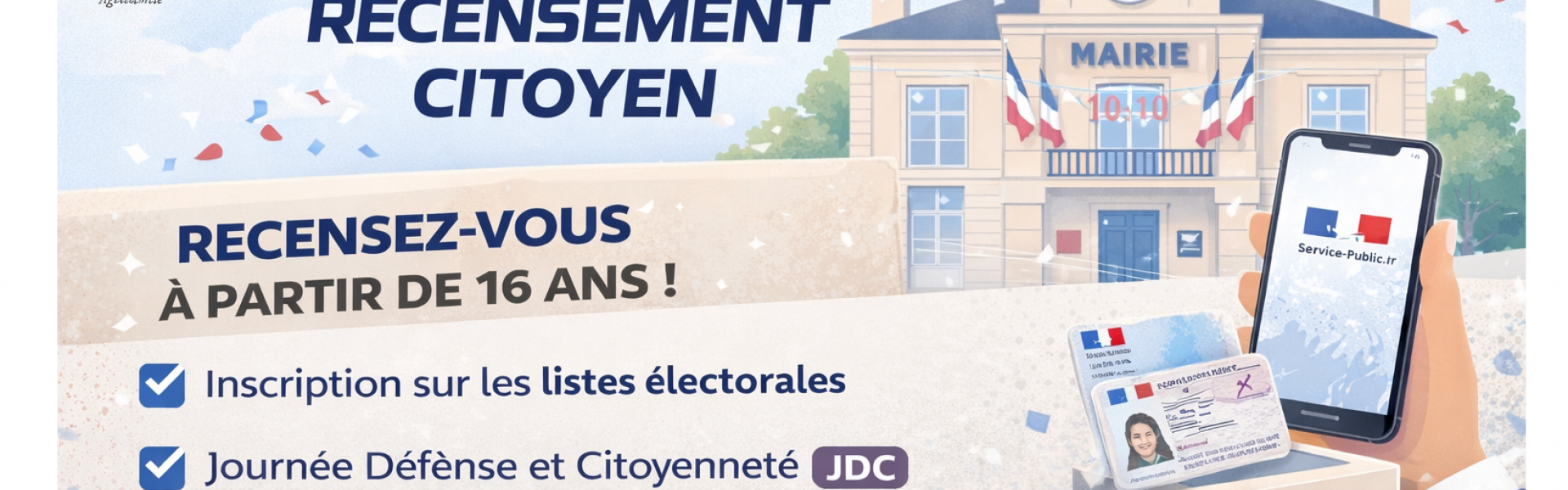 Le recensement concerne tous les Français, filles et garçons, dès leur 16ᵉ anniversaire. Il peut être réalisé directement en mairie ou en ligne sur le site officiel service-public.fr.